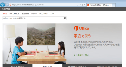 4.InternetExplorerが起動しMicrosoftのOfficeのサイトが表示されます。