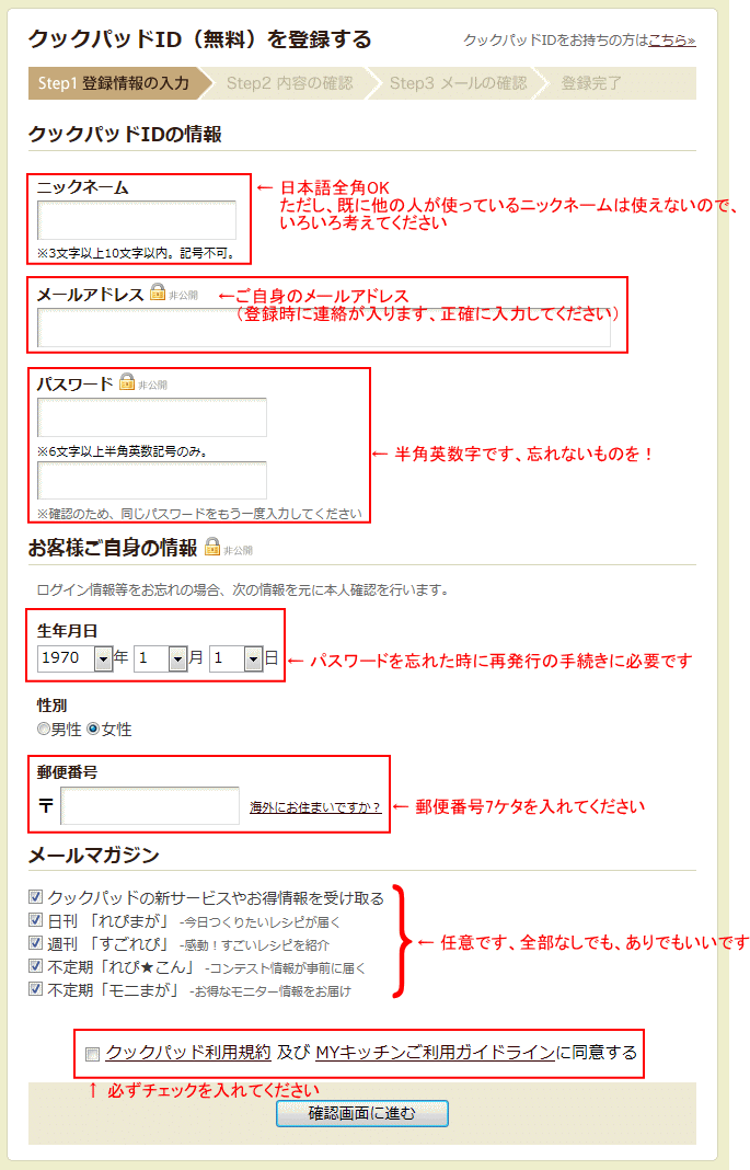 と、その前には、クックパットに会員登録をしなくてはいけません。