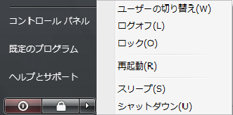 開いているプログラムをすべて終了し、ログオン画面が表示されます。作業を終了し、次のユーザーと交代する場合などに適しています。 |