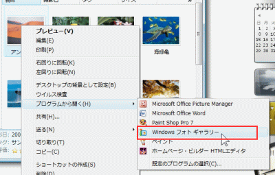 もちろん、写真の時には、「ピクチャーマネージャー」か「Windowsフォトギャラリー」かなども出来ます。