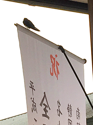 このお店の入り口に飾られていたタペストリーにツバメ止まっていたのをパチリとしたものです。