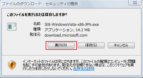 7.下のような画面が表示されるので「実行する」ボタンをクリックします。