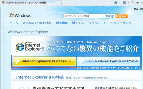 3.Microsoftのページが表示されるので、「Internet Explorer 8のダウンロード」をクリックします。