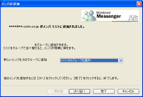 9.正しく、追加されると、下のような画面が表示され、「完了」ボタンをクリックします。
