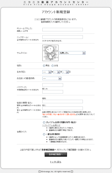 件名:ニコニコ動画登録完了手続きのお願い