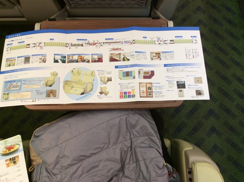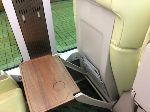 前の座席から出てくる机、これも何とも大きくて、手前に引くのは2段階あります。