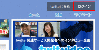 7.「twitvideo」の右上にある「ログイン」をクリックします。