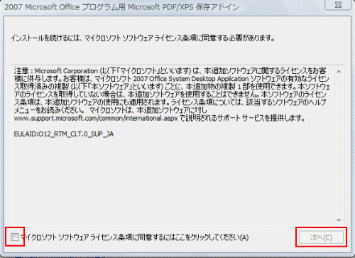 2007 Microsoft Office プログラム用 Microsoft PDF/XPS 保存アドイン