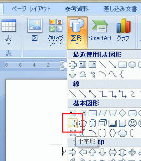 2.図形の中から「十字型」を選択し、適当なサイズに描きます。