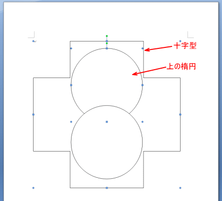21.「十字型」と18、19で作った「円/楕円」の3つの図形をShiftキーを使って選択します。