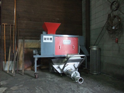 入るとすぐ右手には破砕機。これでまずは、ブドウをつぶします。