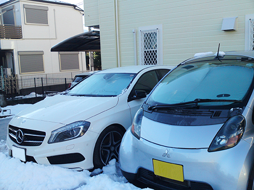 あの時は、ワイパーを上げていなかったのです。(あの時はまだ三菱iだけだったのですが、、、)