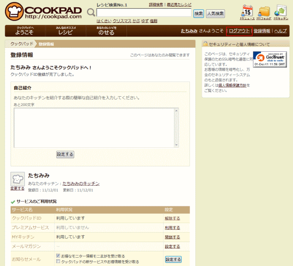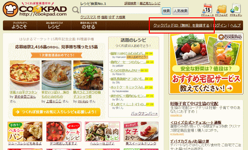 と、その前には、クックパットに会員登録をしなくてはいけません。