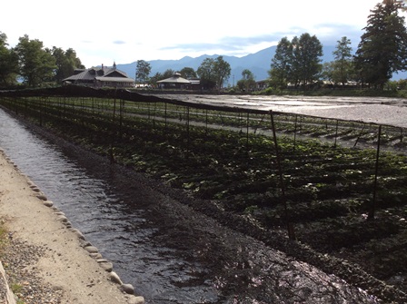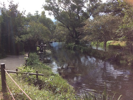 で、きれいな川の流れをみて、わさび農場をみて、洞窟に神社。。。