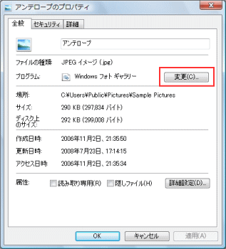 3.「変更」ボタンをクリックします。