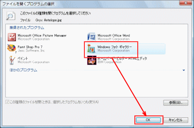 もちろん、写真の時には、「ピクチャーマネージャー」か「Windowsフォトギャラリー」かなども出来ます。