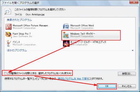 「この種類のファイルを開くときは、選択したプログラムをいつも使う」