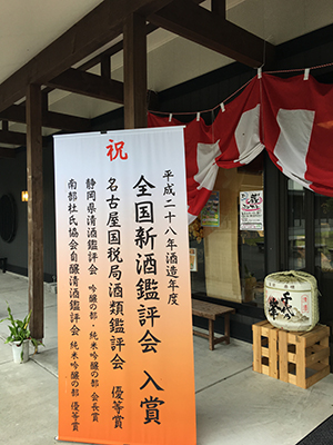 このタペストリーは、「全国新酒鑑評会」に入賞したことをお知らせするものです。