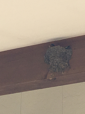 お店の入り口の真上に巣を作り、卵を産んでヒナがかえって、巣だったそうです。