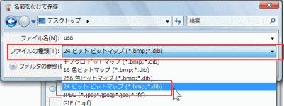 A24ビット(ビットマップ)形式で保存する