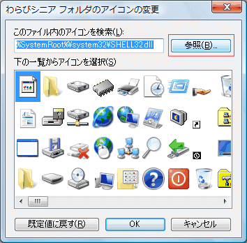 3.「アイコンの変更」ボタンを