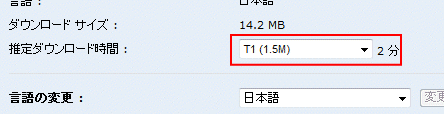 4.下のような画面が表示されるので、「推定ダウンロード時間」を「T1(1.5M)」に変更します。