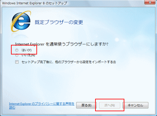 2.下のような画面が表示されるので「はい」をクリックし、「次へ」ボタンをクリックします。