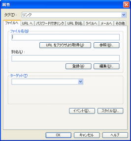 1.「イメージマップの編集」をする画像が入っている ファイルを開いておく。 2.「イメージマップの編集」をしたい画像をクリックし選択します。 3.「編集」をクリックし、「かんたん編集」をポイントし、 「イメージマップの編集」をクリックします。 (イメージマップエディタ の画面が表示されます) ※編集しやすいように画面をおおきくすることをお勧めします。 4.リンク部分を作るために、図形ボタンから1つクリックして 選択します。 5.リンク部分にしたい場所をドラックして囲みます。 6.ドラッグした後、すぐに「属性」の画面が表示されるので、 「参照」ボタンをクリックし、表示したいページを選択し、 「開く」ボタンをクリックします。 「属性」画面にもどり、「OK」ボタンをクリックします。 (イメージマップエディタ の画面が表示されます) この時に、リンク部分が囲まれています。 サイズや、位置の変更はこの時に行います。 全てのリンク設定が終わったら、「OK」ボタンをクリックします。 |