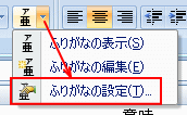 ▼をクリックし、「ふりがなの設定」をクリックします。
