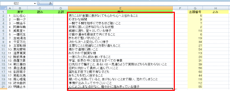 1.「四字熟語一覧」シートのどのセルでもいいのでクリックします。
