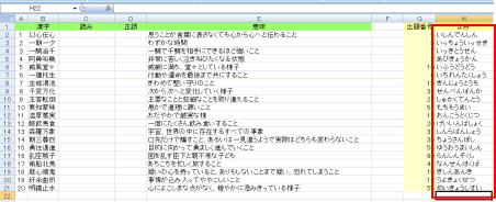 そうでなければ、G2の番号と同じ番号のふりがなを四字熟語一覧から見つけ