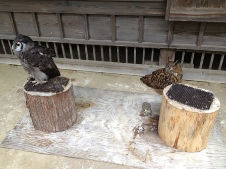右の奥にいるのがワシミミズクのびゃっこちゃん