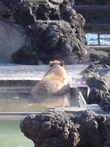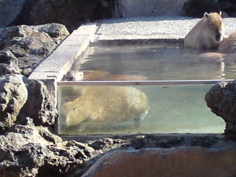 埼玉県こども動物自然公園のカピバラ温泉風景拡大写真〜