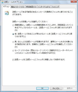 迷惑メールをどこまで振り分けるかの大まかな設定。