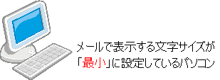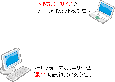 これで、作成する人は、わかったのですが、作成者がどんなに大きな文字でメールを作成しても見る人のパソコンの設定が「最小」だと文字は小さく見えてしまいます。