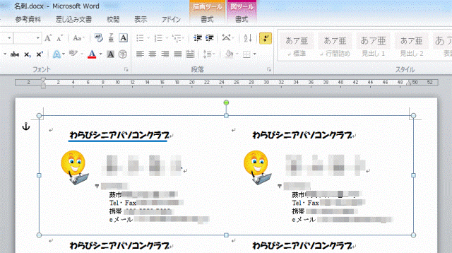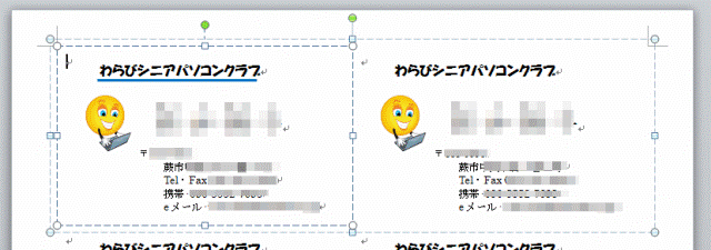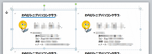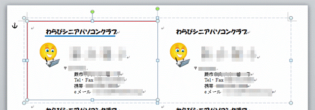 今、生徒さんと「Word」で名刺を作っています。1枚完成させ、コピー・貼り付けで10枚作り、最後に全体の「枠線」をなくしますが、お一人だけどうしても線が消せません。