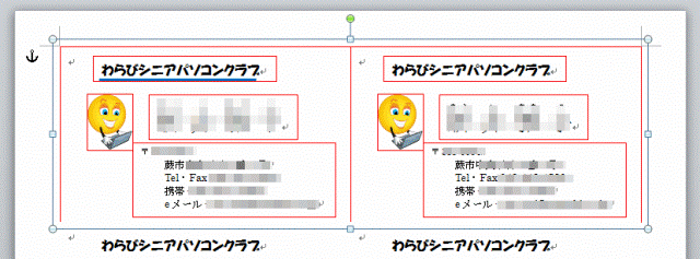 そして、グループ化されている中の1つのテキストボックスをクリックしカーソルが立っている状態になります。