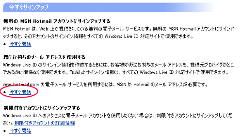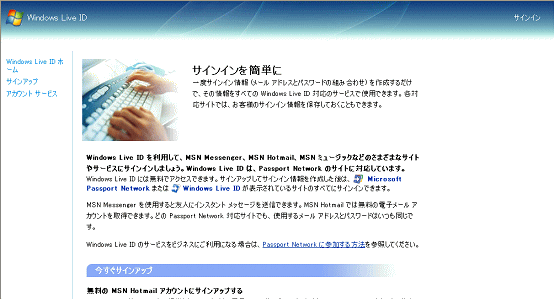 メッセンジャーを使うために、『Windows Live ID』の登録をします。