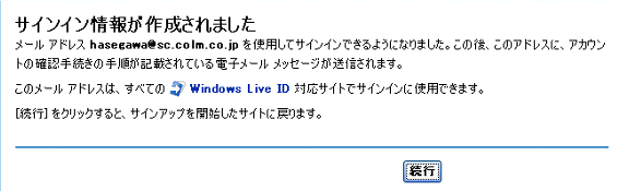 10.下のような「サインイン情報が作成されました」の画面が表示されます。