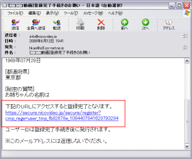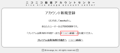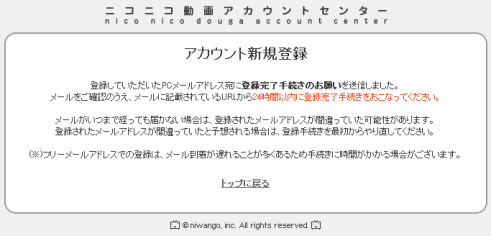 件名:ニコニコ動画登録完了手続きのお願い