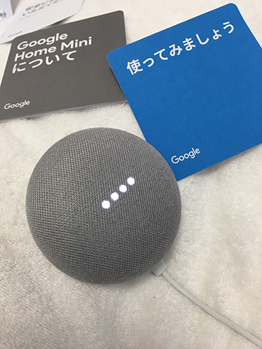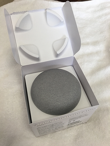 お饅頭、、、いや、Google Home miniを取り出して、