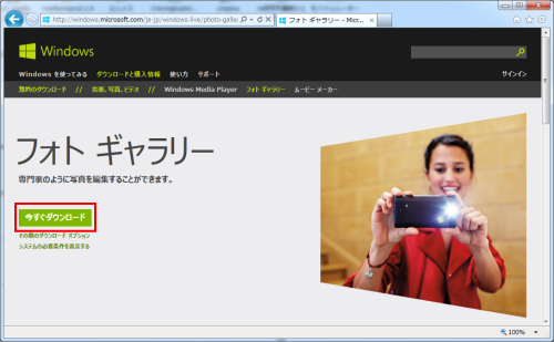 Windows フォトギャラリー(2012)のダウンロード/インストール