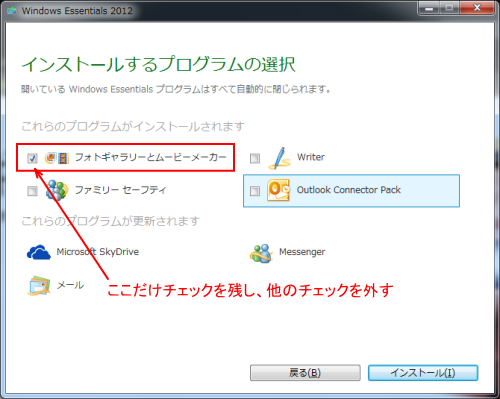 ですので、Liveメールは 2011 で、フォトギャラリーだけ 2012 にするなんてことは出来ません。