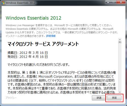 10.初めての起動の時に、下のような同意画面が表示されるので「承諾」をクリックします。