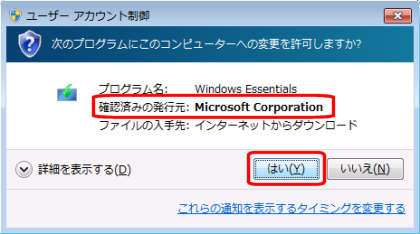 4.下のような許可をする画面が表示されるので「はい」をクリックします。