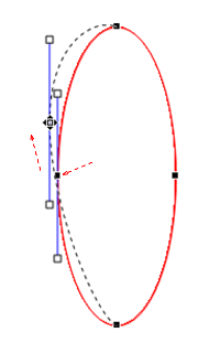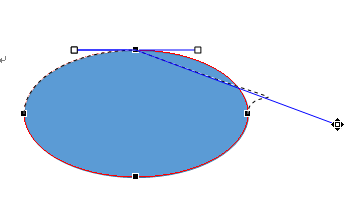 3.楕円の右(または左)の頂点を少し斜め外側上にドラッグし、移動します。