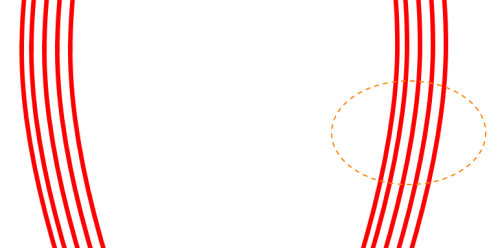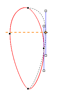 また、外側へ引っ張ると「ゆるやかなカーブ」、内側に引っ張る(頂点に向かう)と「急なカーブ」になります。