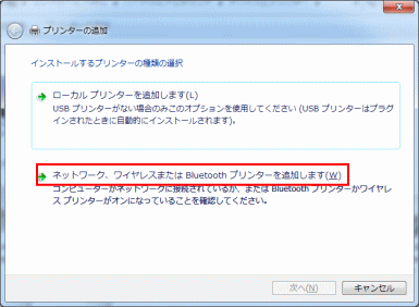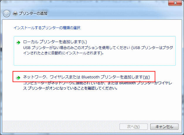 | 4.「ネットワーク、ワイヤレスまたはBluetoothプリンターを追加します」をクリックします |