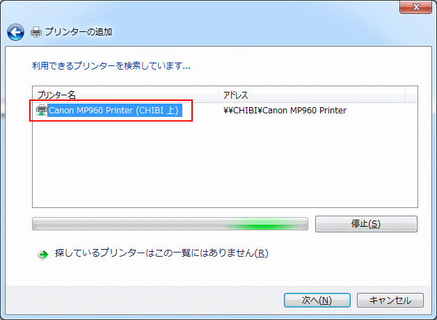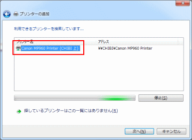 | 5.利用できるプリンタ名が一覧で表示されるので、そのプリンタをクリックします。 |