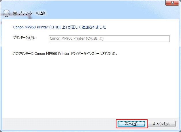 「次へ」をクリックします。 |